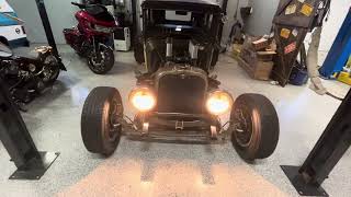 The car was purchased from the original owner who had it built by Millers Chop Shop in NV. This car is definitely an attention getter! In the time Ive had it , revolution rod n custom has installed the stack fuel injection and the electric brake booster. The car drives and handles great. There are long tube headers and a baffle welded into the end caps.