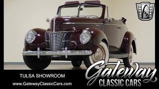 Gateway Classic Cars of Tulsa is proud to represent this 1940 Ford Deluxe Convertible. This timeless beauty is a true testament to Fords rich automotive history, showcasing a striking red exterior that nicely complements its red interior.