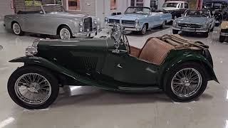 The 1949 MG TC represents the definitive post-war British sports car, admired for its lively 1,250 cc inline-four engine, four-speed manual gearbox, and unmistakable open-top profile with sweeping fenders and wire wheels. This MG TC presents in Rally Green with excellent gloss and luster, featuring right-hand drive and impressive originality throughout. The MG is ideally suited for weekend drives, relaxed touring, and local or regional shows where the models historical significance is always well received. The final-year MG TC offered here is a US-export example that displays just 569 actual miles, believed to have accumulated since restoration. The MG was purchased by the current owner in February 2025 at auction, and although he appreciated the driving character, the seating area proved too limited for his 6-plus-foot frame. The MG runs well, has been enjoyed sparingly, and remains ready for continued light use, exhibition, and vintage rally eligibility. The exterior of the MG is finished in Rally Green with excellent depth and clarity, complemented by chrome wire wheels with knock-off hubs, a rear-mounted spare, dual side mirrors, and a chrome badge bar fitted with a driving lamp and horn. The MG retains its classic proportions and original panel alignment, and the tan folding top with wood frame remains in very good condition. The four 4.5-19 tires retain adequate tread but show slight cracking along the sidewalls. Overall, the presentation is authentic, period-correct, and visually compelling. The interior of the MG features right-hand drive and a four-spoke steering wheel framing a tan dash panel with the correct 100-mph speedometer, tachometer, ammeter, and proper auxiliary controls. The tan leather split bench shows light creasing from careful use, and matching leather extends across the door panels and storage pockets. Black cut-pile carpeting remains in very good to excellent condition, and the floor-mounted shifter underscores the MGs purposeful sporting layout. The interior reflects careful preservation, retaining the charm that defines the models appeal. The MG is powered by its original 1,250 cc inline-four engine producing approximately 54 horsepower, paired with a four-speed manual transmission and four-wheel drum brakes. Chassis number XPAG7150 runs exceptionally well, pulling strongly with no smoke and shifting cleanly through the gearbox. The engine compartment is beautifully detailed and presents to a standard consistent with the remainder of the MG. The electrical system is 12-volt, and overall mechanical condition supports reliable weekend use. The MG is accompanied by its spare tool set, tan canvas tonneau cover, and tan phaeton top with plastic windows, all in excellent condition. For more information and details, please call or text Kendi Brown at 1.623.404.9042 or email us at sales@classicpromenade.com . This 1949 MG TC is available for inspection at our showroom in Phoenix. We are pleased to offer FaceTime or WhatsApp l