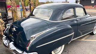 This 1950 Oldsmobile Futuramic 88 is powered by a 303ci V8 mated to a four-speed Hydra-Matic Drive automatic transmission. Finished in blue over a beige and gray cloth interior this survivor is now offered by the selling dealer with the original owner documentation owners manual miscellaneous factory paperwork and clear title.