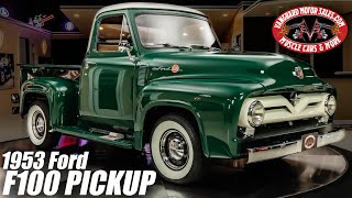 Check out this stunning 1953 Ford F100 Pickup! This F100 has undergone a complete Restoration with no expense spared! This Pickup has been finished in a beautiful Dark Green Exterior Color along with the Oak Lined Bed, Chrome Bumpers & a White Painted Roof! Under the hood sits a 215ci inline 6 Cylinder Engine with a Factory Style Carburetor. Power is sent to the rear wheels through a 3-Speed Manual Transmission and Factory Style Rear End with a 3.89:1 Gear Ratio. Additional Features include, Steel Fenders, Steel Running Boards and New Exhaust! System!