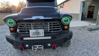 Check out this awesome 1956 Chevy 3100 custom pickup that is riding on a 2002 Tahoe chassis with freshened 5.3L engine and smooth shifting 4L60 automatic. Nice solid body and nice overall paint and interior. Custom Red Dirt Road wheels with 295/55/20 Mastercraft offroad tires. Updated instrument gauge package and nice interior with comfortable bench seat. The truck has power steering, brakes and a/c. Gas gauge is inop. Dont mis out on this cool ride, you will have the only one around like it. She is big and mean and turns all the heads. We offer great financing and shipping options. Give us a call at 618 336 5210 to discuss a deal. Visit Vaughns Classic Cars online at vaughnsclassiccars.com to see more pictures of this vehicle or call us at 618-336-5210 today to schedule your test drive.