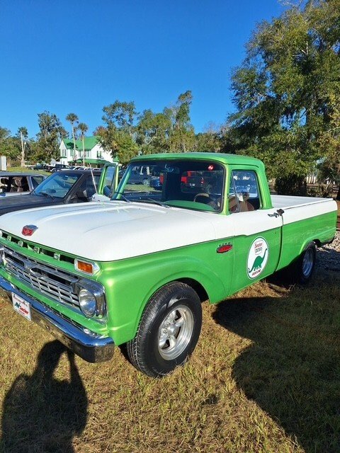 1965 Ford F-100 Short Bed Pickup an exceptional example of classic Ford truck craftsmanship. Decorated as a Sinclair Service truck it is a one of a kind. This F-100 runs and drives well. Finished in Ford White/green, the truck retains a timeless and authentic appearance. The body is solid and straight, and the interior is clean and well-kept, offering an ostrich hide upholstered seat. All gauges, (except speedometer) lights, and wipers function properly, and it maintains excellent oil pressure, reflecting quality care and mechanical soundness over the years. Under the hood sits a 350 GM V8, paired with a rebuilt TH350 automatic transmission a powerful and proven combination that delivers both smooth cruising and strong acceleration. Performance upgrades include an Edelbrock carburetor and HEI ignition, enhancing both reliability and throttle response. This truck also features power steering, power brakes, and front disc brakes, making it easy and comfortable to drive even by modern standards. It rides on a sharp set of American Racing wheels. Overall, this 1965 F-100 is a turn-key classic.