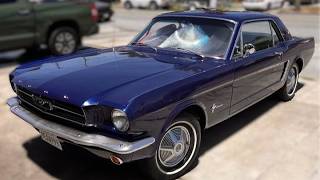 This 1965 Ford Mustang Coupe is a classic driver finished in a dark blue exterior with a black interior. It is powered by an inline-6 engine and paired with a 3-Speed Manual Transmission. The car runs and drives great, and it is described as strong and very reliable with no major mechanical issues. The paint and body are very clean, and the interior is in good condition while keeping the Mustangs classic original look. As expected for a vintage car, it has minor cosmetic imperfections consistent with its age, but nothing significant. The only minor issue noted is the driver side window, which does not roll up or down and may have come off track.