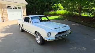 This 1968 Shelby GT350 Fastback is a true blue-chip collectible, restored to concours standards with no detail overlooked. Fresh off a 2,000-hour rotisserie restoration completed in 2024, it represents one of the finest examples of a GT350 available today. Backed by extensive documentation, original components, and an iconic Wimbledon White finish, this Shelby is both an investment-grade collectible and a striking piece of American automotive history.