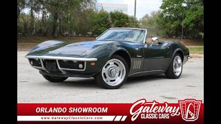Gateway Classic Cars is proud to digitally present this 1969 Chevrolet Corvette Stingray. Dressed in a striking green exterior with a warm tan interior, this classic sports car invites you to slide into its drivers seat and grip the 4-speed manual transmission. Feel the power of the 350 ci V8 engine as you cruise effortlessly, the sound of your favorite tunes playing through the AM/FM radio or CD player. With power steering and radial tires, every turn feels smooth and controlled. This Corvette is more than a car-its an experience waiting to be enjoyed. For more questions, please call 407-771-2000.