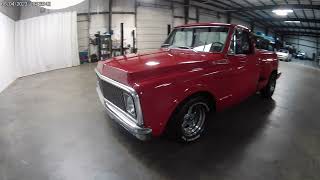 BODY OVERVIEW: This 1971 Chevrolet C10 pickup truck boasts a unique retro customization, featuring a 1990s step-side bed thats been seamlessly integrated. The exterior showcases an iconic red paint that resonates with classic truck enthusiasts. The body is solid and well-maintained, with the step-side bed adding a touch of nostalgia and flair to this one-of-a-kind truck.