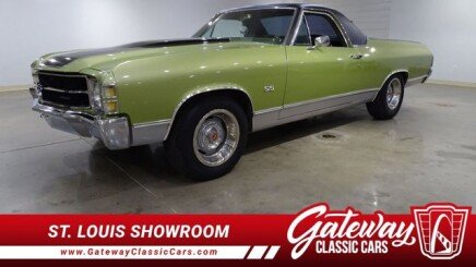 Cruise in style with this 1971 Chevrolet El Camino SS, boasting its original Green/Black exterior and matching Green leather interior. Powered by a V8 SVC 350 engine paired with a Turbo automatic transmission, this classic delivers smooth performance enhanced by a 350 overhaul kit and Trans Co shift kit. Features include air conditioning (134 conversion), power steering, aluminum wheels, tilt steering, seatbelts, and a hard tonneau cover. Dual exhaust, new battery, and recent suspension upgrades ensure a confident ride.
