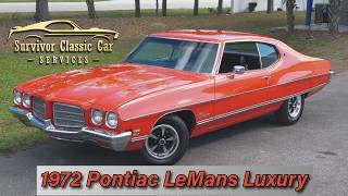 With its eye-catching Sunset Orange finish, black vinyl interior, desirable V8 powertrain, and exclusive Luxury Package details, this 1972 Pontiac LeMans Luxury represents a fantastic opportunity to own a stylish and increasingly collectible piece of classic American automotive history.