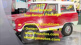 This 1977 Ford Bronco Ranger is a true and pure example, entirely rust free and fully restored!! Its Restoration was finished by Bronco Guru Drew Peroni who is well known in the Bronco Community as an authenticator and Concours Show Winning Level Restorer, you can trust this Bronco is exact and perfect in every way.