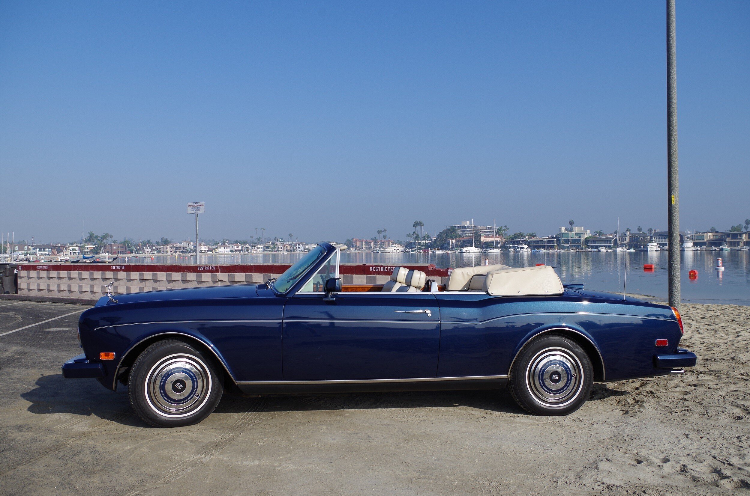 This elegant 1986 Corniche II is finished with a royal blue exterior and a cream with dark blue piped interior. A matching cream tonneau cover adds to the classic look. The interior burled wood is gorgeous and looks new. The carpet is royal blue with matching mats in excellent condition.