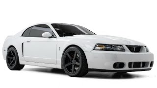 If youre searching for a legendary beast designed to be driven at the limit, this 2003 Ford Mustang SVT Cobra is the one for you! Powered by a supercharged 4.6-liter V8 engine mated to a six-speed manual transmission, this American machine originally produced 390 horsepower and 390 lb-ft of torque, which the rear wheels put to the pavement. This power plant is not as it left the factory, though. A JLT cold air intake system, a Reichard Racing 2.800 billet supercharger pulley, an MSD fuel pump voltage controller, BBK long-tube headers, billet idler pulley, an upgraded throttle body, and performance tuning work in tandem to take this beasts performance capabilities to the next level. This Mustang SVT Cobra sits on black-finished five-spoke 18 Rovos wheels and is finished in Oxford White, a brilliant hue that perfectly suits this cars striking lines.