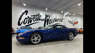 This C5 2004 LeMans Blue Metallic / Shale Commemorative Edition Chevrolet Corvette Coupe comes loaded up with the 1SC Preferred Equipment Group ($3,700), G92 Axle, 3.15 Performance Ratio ($395), V49 License Plate Bracket, Front ($15), B84 Moldings, Bodyside, Body Color ($150), and the removable targa top.