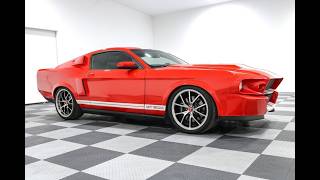 Finished in red and riding low with purpose, this coupe has been transformed with a 1968 RetroBuilt Mustang build that channels pure Eleanor attitude. The custom 1968 body kit, sculpted hood, molded rear spoiler, billet gas cap, and LED tail lights bring unmistakable vintage muscle presence to modern Shelby performance. It is not your average 2011 GT350 look alike, but a full tribute style build that fuses classic fastback aggression with contemporary engineering.