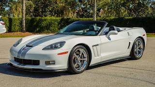 2013 Corvette Grand Sport Convertible 4LT 6.2L Naturally Aspirated V8 (LS3) 6-Speed Automatic RWD Arctic White Exterior Blue Diamond Interior Blue Convertible Soft Top Diamond Blue Custom Leather Wrapped Seating Surfaces 2.73 Ratio Limited Slip Rear Axle 4LT Preferred Equipment Group 60th Anniversary Design Package 60th Anniversary Stripe Package Audio System w/ Navigation, AM/FM, CD, MP3 & DVD Touch Screen Magnetic Selective Ride Control Dark Gray Metallic Brake Calipers Dual Mode Performance Exhaust ZR1-Style Full Width Body Color Spoiler Cyber Gray Metallic Headlamp Color Override
