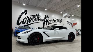This C7 2015 Arctic White / Jet Black Leather Chevrolet Corvette Stingray Coupe comes loaded up with the 2LT Preferred Equipment Group ($4,160), ZF1 Appearance Package ($1,995), J6F Calipers, Red Painted ($595), NPP Dual-Mode Exhaust High-Performance ($1,195), DTW Carbon Flash Hood Stinger Stripe ($500), M5U Transmission,8 Speed Paddle Shift with Automatic Modes ($1,725), UQT Performance Data and Video Recorder ($1,795), and the Carbon Flash Side Skirts.
