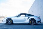 This 2015 Porsche 911 Turbo Cabriolet is a high-performance open-top supercar that combines blistering twin-turbo power, all-wheel-drive traction, and the thrill of a power-folding soft top. Finished in elegant Rhodium Silver Metallic over a Black leather interior, this example with 64,633 miles is powered by a 3.8-liter twin-turbocharged flat-six engine producing 520 factory-rated horsepower, paired with a 7-speed PDK dual-clutch transmission. Loaded with desirable options including Porsche Ceramic Composite Brakes (PCCB), Sport Chrono Package, Adaptive Sport Seats Plus (18-way) with memory, Racing Yellow accents on dials, clock, and seat belts, Premium Package Plus, and more, it offers an outstanding balance of raw performance, luxury, and open-air driving enjoyment.