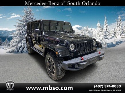 Black Clearcoat WE DELIVER TO YOUR HOME OR OFFICE. Accent Stitching, Alpine 9-Speaker w/All Weather Subwoofer, Black/Chrome Screws Fuel Filler Door, Chrome/Leather Wrapped Shift Knob, Class II Receiver Hitch, Connectivity Group, Driver Height Adjuster Seat, Front Seat Back Map Pockets, Heated Front Seats, Hood w/Power Dome, Jeep Trail Rated Kit, Leather Trimmed Bucket Seats, Leather Wrapped Steering Wheel, Low Gloss Black Wrangler Decal, Max Tow Package, MOPAR Slush Mats, Premium Black Sunrider Soft Top, Premium EVIC Message Center, Quick Order Package 24J Rubicon Hard Rock, Red Front & Rear Tow Hooks, Red Trail Rated Badge, Remote USB Port, Rubicon Hard Rock Package, Rubicon Hood Decal, Silver Interior Accents, Steel Front Bumper, Steel Rear Bumper, Sunrider Soft Top, Tire Pressure Monitoring Display, Trailer Tow w/4-Pin Connector Wiring, Uconnect Voice Command w/Bluetooth, Vehicle Information Center, Wheels: 17 x 7.5 Polished Semi-Gloss Black. BLUETOOTH:Bluetooth is a registered mark of Bluetooth SIG, Inc, Connectivity Group (Leather Wrapped Steering Wheel, Remote USB Port, Tire Pressure Monitoring Display, Uconnect Voice Command w/Bluetooth, and Vehicle Information Center), Max Tow Package (Class II Receiver Hitch and Trailer Tow w/4-Pin Connector Wiring), Quick Order Package 24J Rubicon Hard Rock (Accent Stitching, Alpine 9-Speaker w/All Weather Subwoofer, Black/Chrome Screws Fuel Filler Door, Chrome/Leather Wrapped Shift Knob, Driver Height Adjuster Seat, Front Seat Back Map Pockets, Heated Front Seats, Hood w/Power Dome, Jeep Trail Rated Kit, Leather Trimmed Bucket Seats, Low Gloss Black Wrangler Decal, MOPAR Slush Mats, Premium Black Sunrider Soft Top, Premium EVIC Message Center, Red Front & Rear Tow Hooks, Red Trail Rated Badge, Rubicon Hood Decal, Silver Interior Accents, Steel Front Bumper, Steel Rear Bumper, Sunrider Soft Top, and Wheels: 17 x 7.5 Polished Semi-Gloss Black), Rubicon Hard Rock Package, 17 x 7.5 Polished Mineral Gray Wheels, 4-Wheel Disc Brakes, 4.10 Rear Axle Ratio, 40GB Hard Drive w/28GB Available, 5-Year SiriusXM Travel Link Service, 6.5 Touchscreen Display, 8 Speakers, ABS brakes, Add 4.10 Axle Ratio, Air Conditioning, Air Conditioning w/Auto Temperature Control, Air Filtering, Alloy wheels, AM/FM radio: SiriusXM, Audio Jack Input for Mobile Devices, Auto-dimming Rear-View mirror, Body Color Fender Flares, Brake assist, CD player, Cloth Seats w/Adjustable Head Restraints, Compass, Driver door bin, Driver vanity mirror, Dual front impact airbags, Electronic Stability Control, Freedom Panel Storage Bag, Front anti-roll bar, Front Bucket Seats, Front Center Armrest w/Storage, Front fog lights, Front reading lights, Fully automatic headlights, GPS Navigation, Heated door mirrors, Humidity Sensor, Illuminated entry, Integrated roll-over protection, Leather steering wheel, Low tire pressure warning, Occupant sensing airbag, Outside temperature display, Panic alarm, Passenger door bin, Passenger vanity mirror, Performance Suspension, Power door mirrors, Power steering, Power windows, Radio data system, Radio: 130, Radio: 430N, Rear anti-roll bar, Rear Window Defroster, Rear Window Wiper/Washer, Remote keyless entry, Remote Start System, Security system, SiriusXM Travel Link, Speed control, Split folding rear seat, Steering wheel mounted audio controls, Supplemental Front Seat Side Airbags, Tachometer, Tilt steering wheel, Traction control, Trip computer, and Variably intermittent wipers. Odometer is 4327 miles below market average!