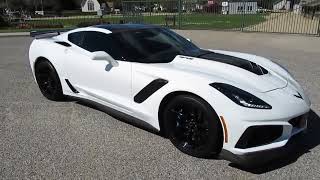 The best of the best for 2019! The ZR1 is an amazing Sportscar with the LT5 6.2 Liter Supercharged V8 rated at 755 Horsepower with 715 foot pounds of torque and backed by an 8 Speed Automatic transmission with paddle shifts for spirited driving. 2019 is the last year for the front engine platform which some drivers actually prefer. This one was special ordered by the previous owner here in Southern California and only driven just over 1100 miles since new. It was stored in a private collection in a temperature controlled garage and has never seen rain or even a car wash. The front nose and mirrors are covered in clear paint protection film just in case you want to get it up on the highway. The 3ZR package pretty much has nearly everything you could want like full power heated and ventilated Sport Seats finished in Black leather with Blue deviated stitching and alcantara centers with matching door panels, steering wheel and dash. Some of the options include, switchable driving modes from Touring to Sport or Track, Magnetic Selective Ride Control, Speed sensitive power steering, Push button start, power tinted windows, power locks and power heated mirrors, heads up display, Bose touch screen audio system with Apple Carplay, Navigation, front and rear Cameras with curb vision and recording capabilities. The Arctic White paint finish is accented with a lot of Carbon Fiber trim pieces like front splitter, side skirts and vents as well as the rear wing. Even the hood and removable Targa top are made of Carbon fiber and the 19 and 20 inch staggered wheels are finished in Carbon Flash Black hiding those massive Carbon Ceramic Brakes with Blue painted Brembo Calipers for the much needed stopping power. This beautiful car comes with both keys, all books and records, window sticker and even a transferable warranty from Chevrolet. Add it to your collection or start driving your new 2019 ZR1 today!