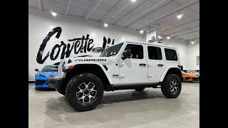 This 2021 Bright White Clearcoat / Dark Saddle/Black Jeep Wrangler Unlimited Rubicon 4x4 comes equipped with the DFT Transmission: 8 Speed Automatic (850 Re) ($2,500), TWG Tires: LT285/70 R17 C BSW M/T ($195), ALTV Dark Saddle/Black, Leather Trimmed Bucket Seats ($1,625), AD6 Led Lighting Group ($1,465), AEK 8.4 Radio & Premium Audio Group ($1,995), ALP Advanced Safety Group ($795), AJ1 Safety Group ($995), AWS Smokers Group ($30), ADE Cold Weather Group($995), HT3 Body Color 3 Piece Hard Top ($2,595), MM3 Body Color Fender Flares ($695), XBM Remote Start System ($495), GXD Remote Proximity Keyless Entry ($695), CHD Mopar Hardtop Headliner ($525), CWA Mopar All Weather Floor Mats ($165), and the XNY Integrated Off Road Camera ($595).