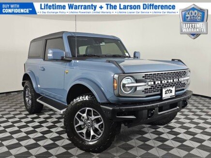 New Reduced Sale Price Clean One Owner Carfax Badland Series Equipment Group 334A High/Lux Package B&O Sound System By Bang & Olufsen 10 Speakers With Subwoofer Leather Trimmed/Vinyl Bucket Seats Front Row Heated Seats Heated Sterring Wheel Wireless Charging Pad Lane Keeping System Running Boards Trailer Tow Receiver Hitch Package 360 Degree Camera Adaptive Cruise Control Larson Automotive Group has been serving members of the community since 1953 and would love to make you a part of the family: Free Lifetime Powertrain Warranty Vehicle Appearance & Key Protection Bundle $1,000 Additional Trade in Guarantee Lifetime Free Car Washes 5 Day Exchange Policy Free Loaner Car with Service All Used Vehicle come equipped with the PULSE Safety System for $399 included in each vehicle purchase price. Price does not include dealer added accessories. Savings include a $1000 Lojack Discount See Dealer for details. Larson Chrysler Dodge Jeep Ram offers this 2024 Azure Gray Metallic Tri-Coat Ford Bronco Badlands 4WD which is well equipped and includes these features and benefits: Equipment Group 334A High/Lux Package (10 Speakers w/Subwoofer, 2-Door Intelligent Access w/Lock/Unlock, 360-Degree Camera, Adaptive Cruise Control, Additional Sound Deadening, Ambient Footwell Lighting, Auto-Dimming Interior Rear-View Mirror, Dr & Pass Illuminated Sliding Visor Vanity Mirrors, Dual Smart Charging USB Ports, Dual-Zone Electronic Automatic Temperature Control, Evasive Steering Assist, Front Parking Sensors, Front Row Heated Seats, Heated Steering Wheel, Information on Demand Panel, Power Outlet - Back Side of Center Floor Console, Radio: B&O Sound System by Bang & Olufsen, Rear Parking Sensors, Sideview Mirrors, Universal Garage Door Opener, and Wireless Charging Pad), Trailer Tow Package, 4-Wheel Disc Brakes, 4.7 Axle Ratio, ABS brakes, Air Conditioning, AM/FM radio: SiriusXM with 360L, AM/FM Stereo, Auto High-Beam Headlamps, Auto High-beam Headlights, BLIS Blind Spot Information System, Brake assist, Compass, Convertible HardTop, Convertible roof lining, Delay-off headlights, Driver door bin, Driver vanity mirror, Dual front impact airbags, Dual front side impact airbags, Electronic Stability Control, Emergency communication system: 911 Assist, Exterior Parking Camera Rear, Front anti-roll bar, Front Bucket Seats, Front Center Armrest, Front License Plate Bracket, Front reading lights, Front wheel independent suspension, Fully automatic headlights, Glass rear window, Heated door mirrors, Illuminated entry, Integrated roll-over protection, Lane-Keeping System, Leather Shift Knob, Leather-Trimmed/Vinyl Bucket Seats, Low tire pressure warning, Marine Grade Vinyl Bucket Seats, Occupant sensing airbag, Outside temperature display, Overhead airbag, Overhead console, Panic alarm, Passenger door bin, Passenger vanity mirror, Power door mirrors, Power steering, Power windows, Pre-Collision Assist w/Automatic Emergency Braking, Radio data system, Rear window defroster, Rear window wiper, Rear-View Camera, Remote keyless entry, Remote Start System, Security system, SiriusXM Radio w/360L, Speed control, Split folding rear seat, Steering wheel mounted audio controls, SYNC 4, Tachometer, Telescoping steering wheel, Tilt steering wheel, Traction control, Trip computer, Variably intermittent wipers, Voltmeter, and Wheels: 17 Machined Carbonized Aluminum. All vehicles are one of each. All Pre-Owned or Certified vehicles are Used. A dealer documentary service fee of up to $200 may be added to the sale price or capitalized cost. All offers expire on close of business the day subject content is removed from website, and all financing is subject to credit approval. Prices exclude tax, title, and license. All transactions are negotiable including price, trade allowance, interest rate (of which the dealer may retain a portion), term, and documentary service fee. Any agreement is subject to execution of contract documents. Every reasonable effort is made to ensure the accuracy of this data. Please verify any information in question with a dealership sales representative. Pricing provided may vary significantly between website and dealer as a result of supply chain constraints. Pricing shown is non-binding and does not constitute an offer. Contact your dealer for updated vehicle pricing. Larson discounts for Washington Residents Only. Out of state customers call dealer for details.