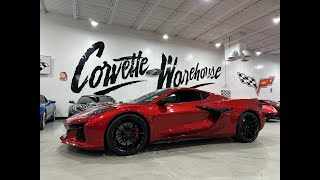 2025 Red Mist Metallic / Jet Black Leather Chevrolet Corvette Z06 Coupe Comes Loaded Up with Premium Option Package, Red Mist Metallic Tintcoat ($995), Gloss Black Forged Aluminum Spider Design Wheels, ($995), J6F Edge Red-Painted Brake Calipers ($695), Black Exhaust Tips,($395), Black Lug Nuts (Dealer Installed) ($275), Carbon Flash Metallic Painted Outside Mirrors ($195), and the Black Wheels Locks (Dealer Installed) ($130) with only 1k miles!